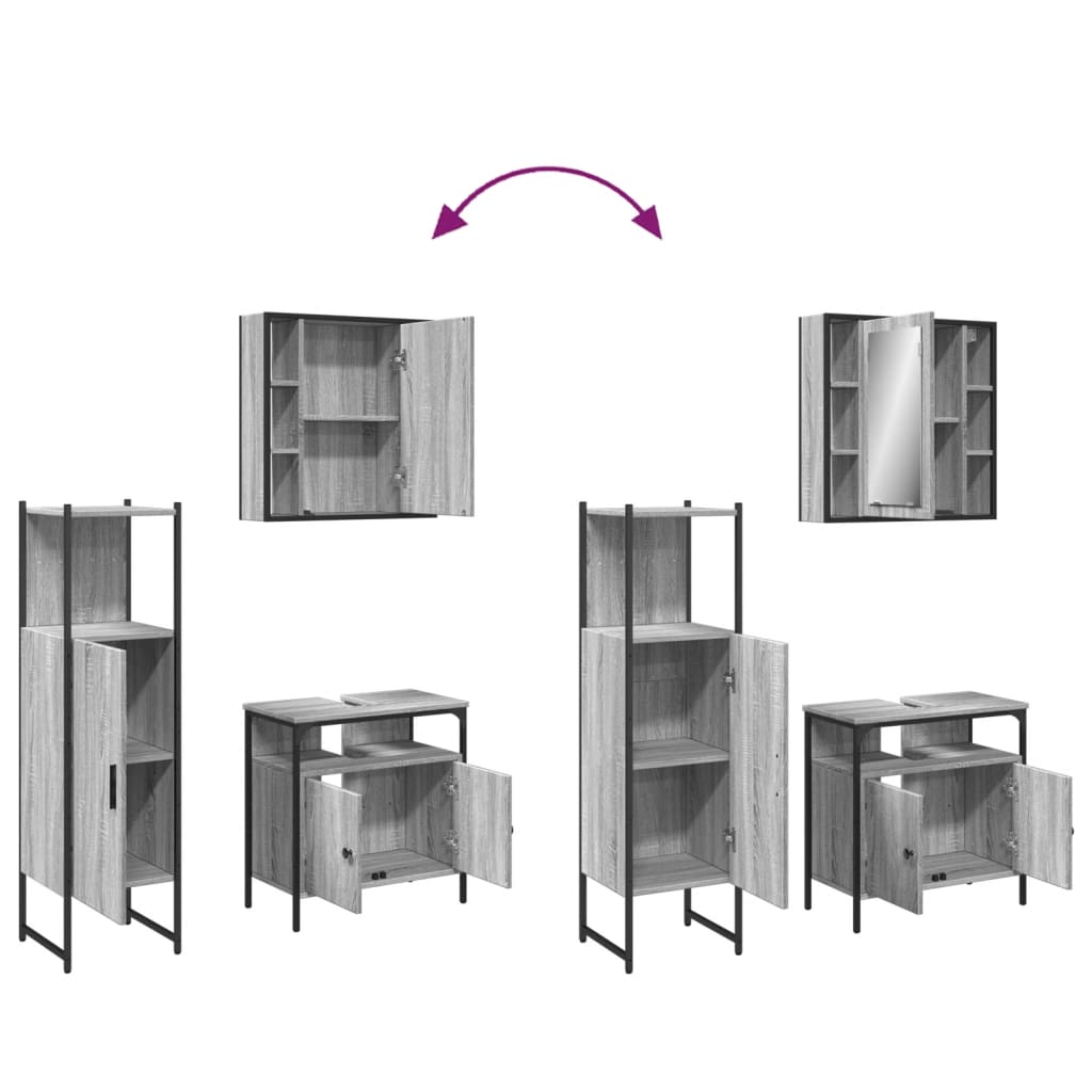 3 Piece Bathroom Cabinet Set Grey Sonoma Engineered Wood