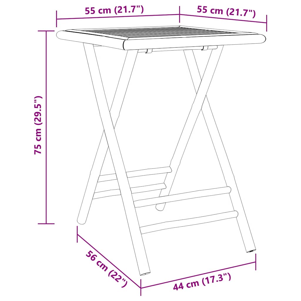 Enjoy a cup of coffee or have a chat with your family and friends in the garden, backyard, or on the balcony with this bistro set! Durable and long-lasting: As a natural material, bamboo boasts good breathability and a low odour. These qualities make the garden bistro set durable, water-resistant, and long-lasting.Foldable design: The outdoor bistro set can be easily folded away when not in use, for easy storage and transportation.Stable top: The stable top of the garden table is ideal for placing your drink or any other necessity you need close at hand.Comfortable seating experience: Featuring a backrest, the outdoor chair gives you the utmost comfort. Good to know:To make sure your outdoor furniture stays beautiful, we recommend protecting it with a waterproof cover.