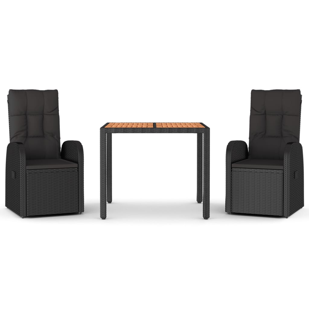 3 Piece Garden Dining Set Black Poly Rattan&Solid Wood Acacia