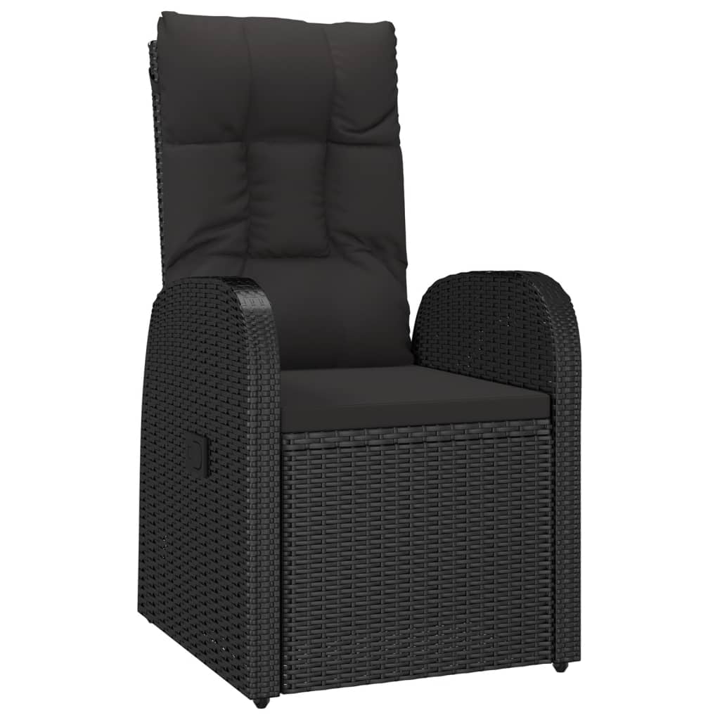 This garden dining set, with an elegant and contemporary design, will be a great choice for dining or relaxing in the garden. Durable material: PE rattan, also known as poly rattan, is weather resistant and easy to clean. It remains beautiful on the outside for a long period of time. It offers great quality, convenience and an aesthetic look.Stable frame: The powder-coated steel frame of the garden furniture set ensures sturdiness and stability.Reclining function: The garden chairs of this outdoor dining set are specially designed with a reclining function so that you can adjust the backrest as per your comfort.Practical table: The sturdy tabletop is perfect for keeping your phone, book, snack or drink within easy reach.Extra comfort: The thickly padded cushion of the patio dining set provides ultimate comfort during your relaxing time. Note:To make sure your outdoor furniture stays beautiful, we recommend protecting it with a waterproof cover. Good to know:To make assembly as easy as possible, each product is delivered with a manual.