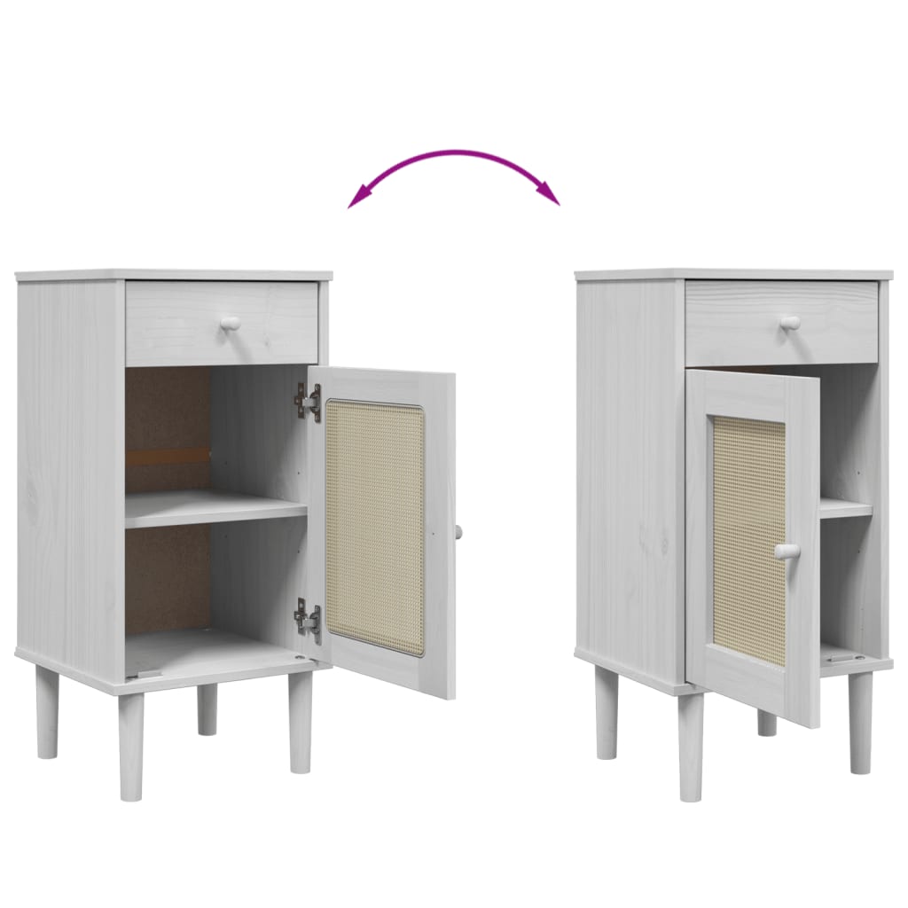 Bedside Cabinet SENJA Rattan Look White 40x35x80 cm Solid Wood Pine